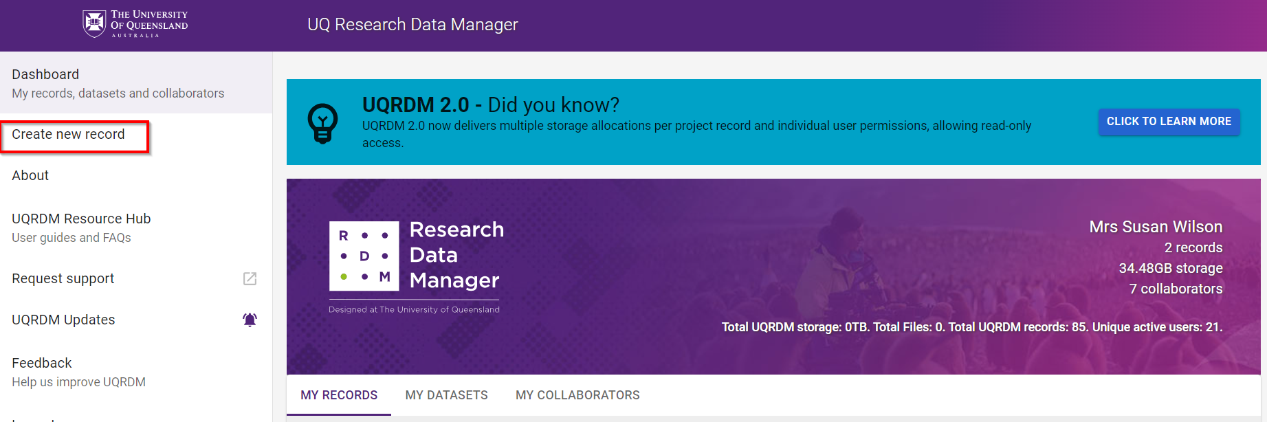 Login to the UQRDM: https://rdm.uq.edu.au